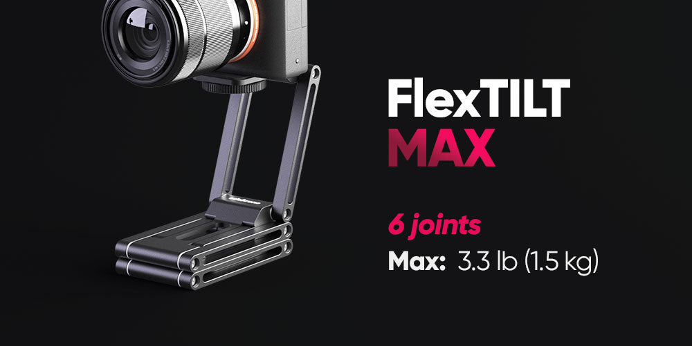 Attach any mirrorless, DSLR, or compact cinema camera setup up to 5.5 lb (2.5 kg) with peace of mind. FlexTILT is also the perfect add-on for edelkrone sliders, dollies, jibs, motorized heads, and camera stands.